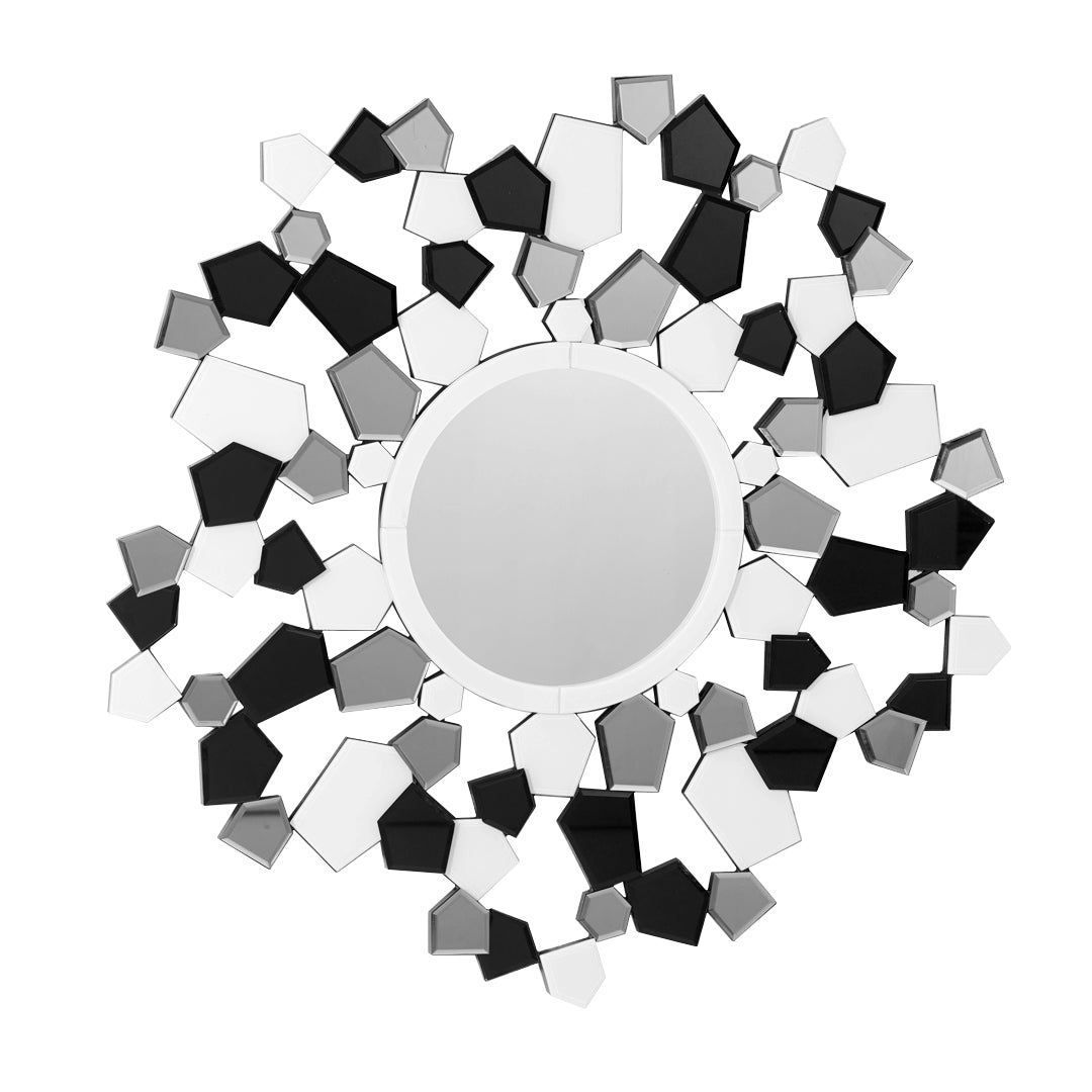 Add an artistic touch to your space with this accent mirror, which showcases a central round mirror encircled by a mosaic of angular pieces in a monochromatic palette.