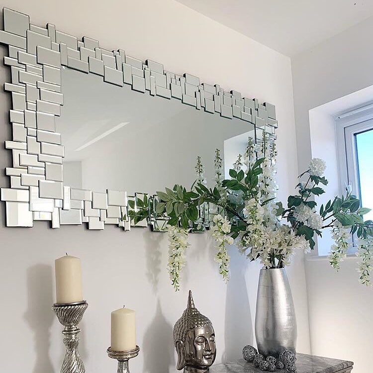 Nothing short of a work of art, this inimitable piece features a stunning outer border of layered mosaic mirrors. Hang this piece on any wall in your home to instantly spruce up the room's character, while adding light and depth to the interiors. Definitely, a perfect piece for any living space.