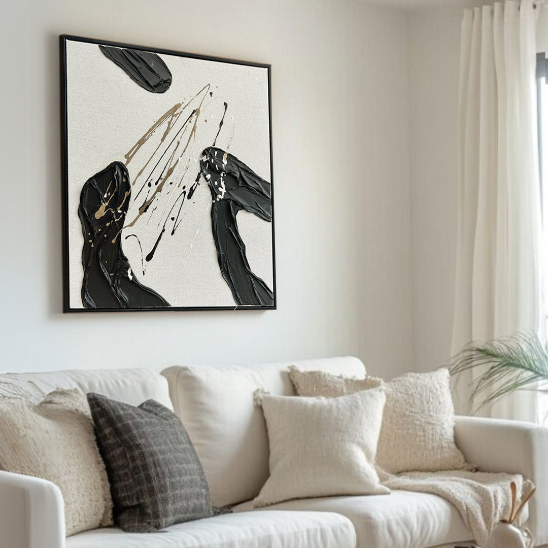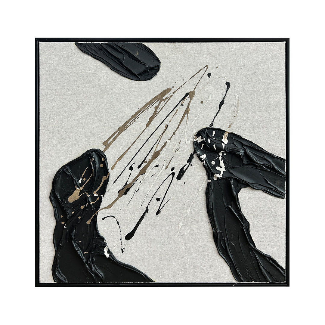 Bold strokes and fluid splashes collide, capturing the delicate balance between deep thought and fleeting inspiration. Like a wandering mind, ideas emerge in the space between control and chaos, shaping something beautifully unexpected.