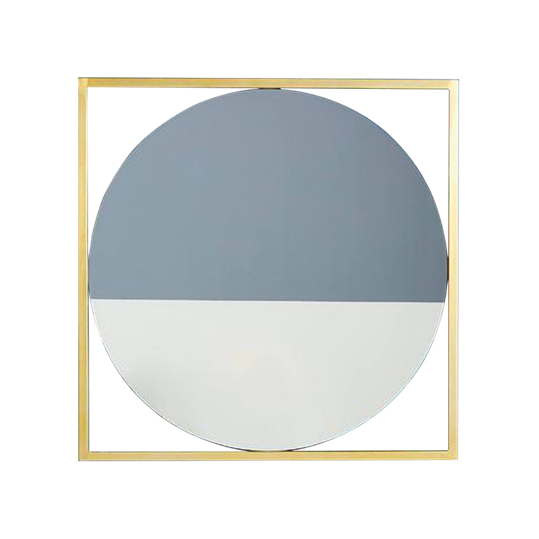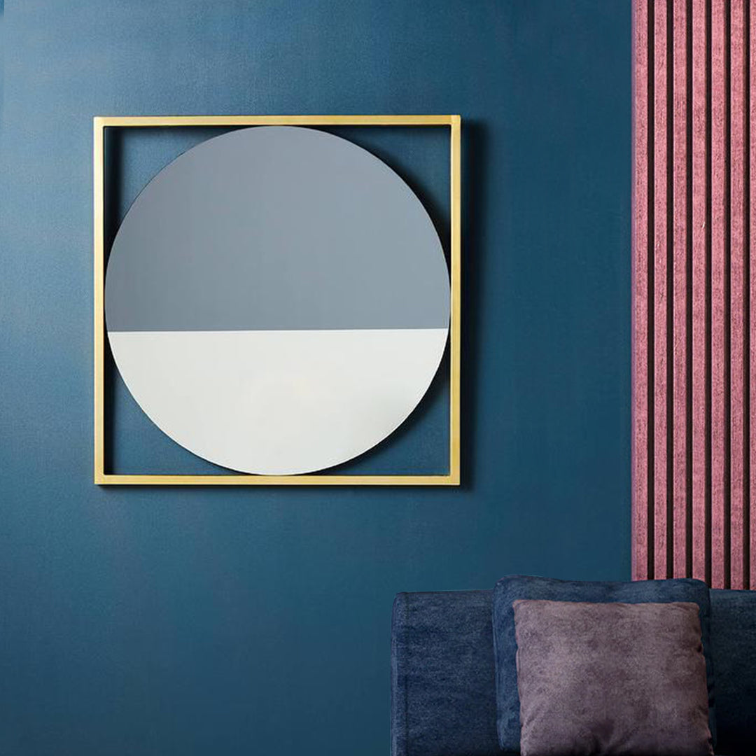 Elevate the aesthetic allure of your home décor with this round mirror encased within a square metal frame. Its striking combination of soft curves and angular edges exudes modern elegance, making it the perfect statement piece to elevate the aesthetic appeal of your interior décor.