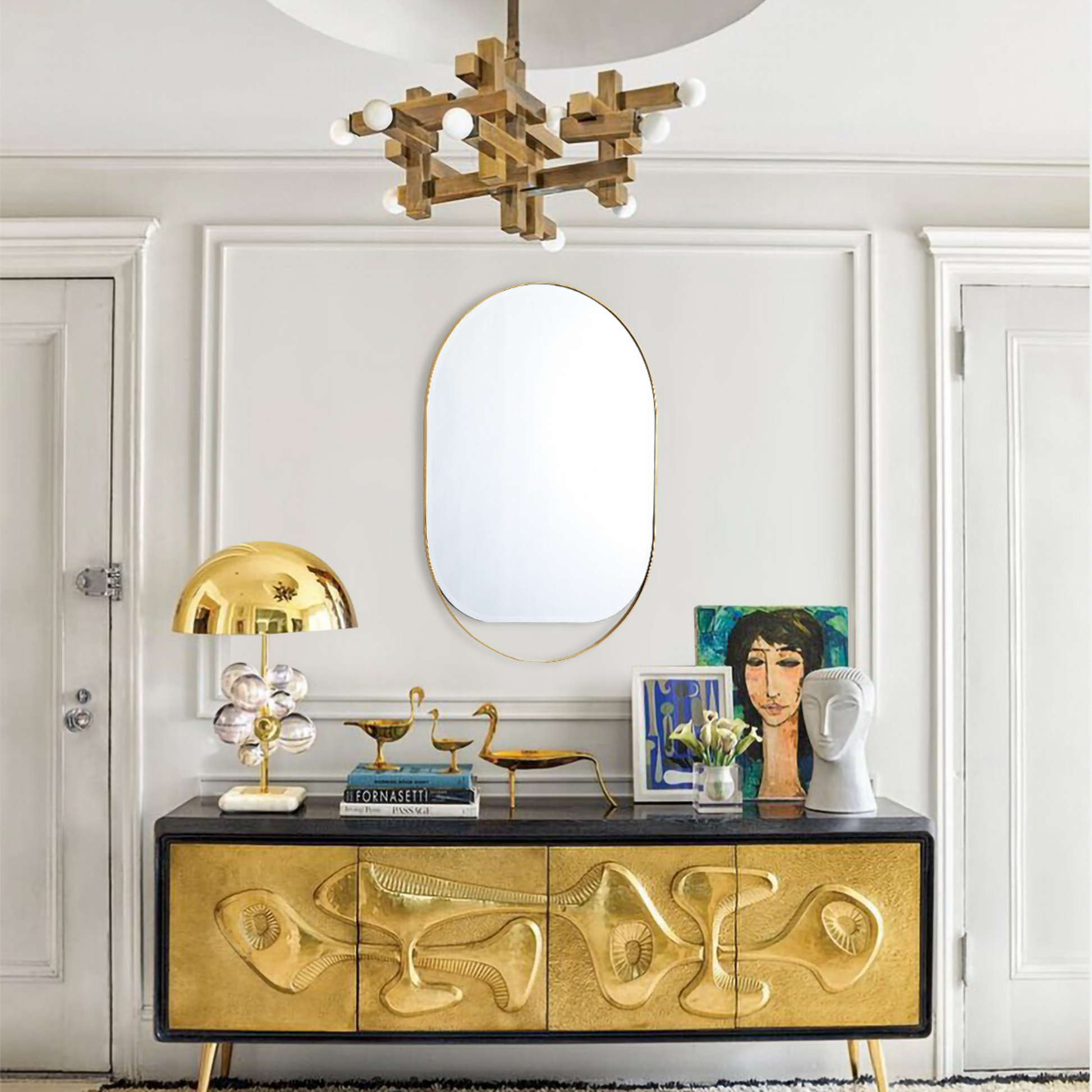 Classic chic meets modern sleek in this beautiful stainless steel oval mirror. The perfect size to make a statement in a bedroom, entryway, living room or bathroom, this round mirror features an unique cutout design at the bottom edge.