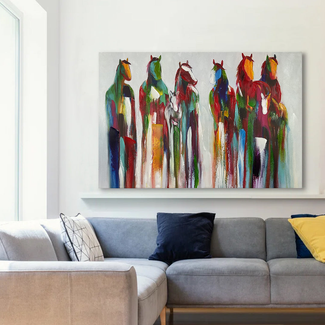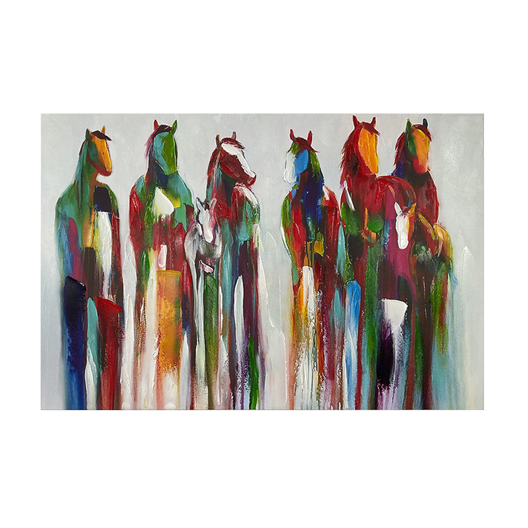 In a vibrant symphony of color, a group of horses signify achievement, commitment, and bravery. Their confident stance portrays a bold endurance, forging a path adorned with the fortuitous blessings of fate.