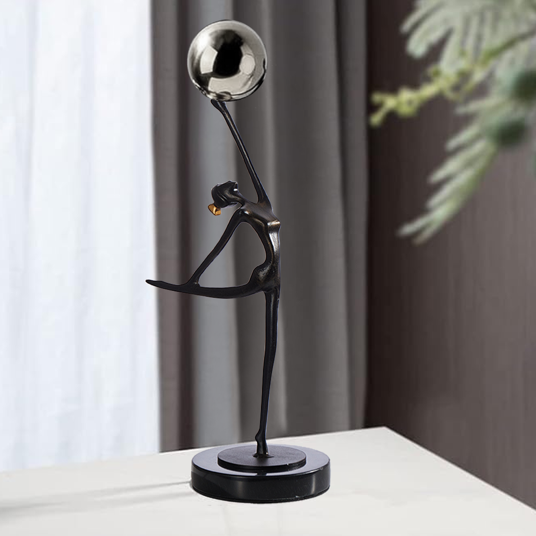 A poised gymnast caught in a graceful arabesque pose, her form captures the energy and beauty of gymnastic artistry. Whether displayed on a mantel or shelf, this piece radiates grace, beauty and feminine strength.