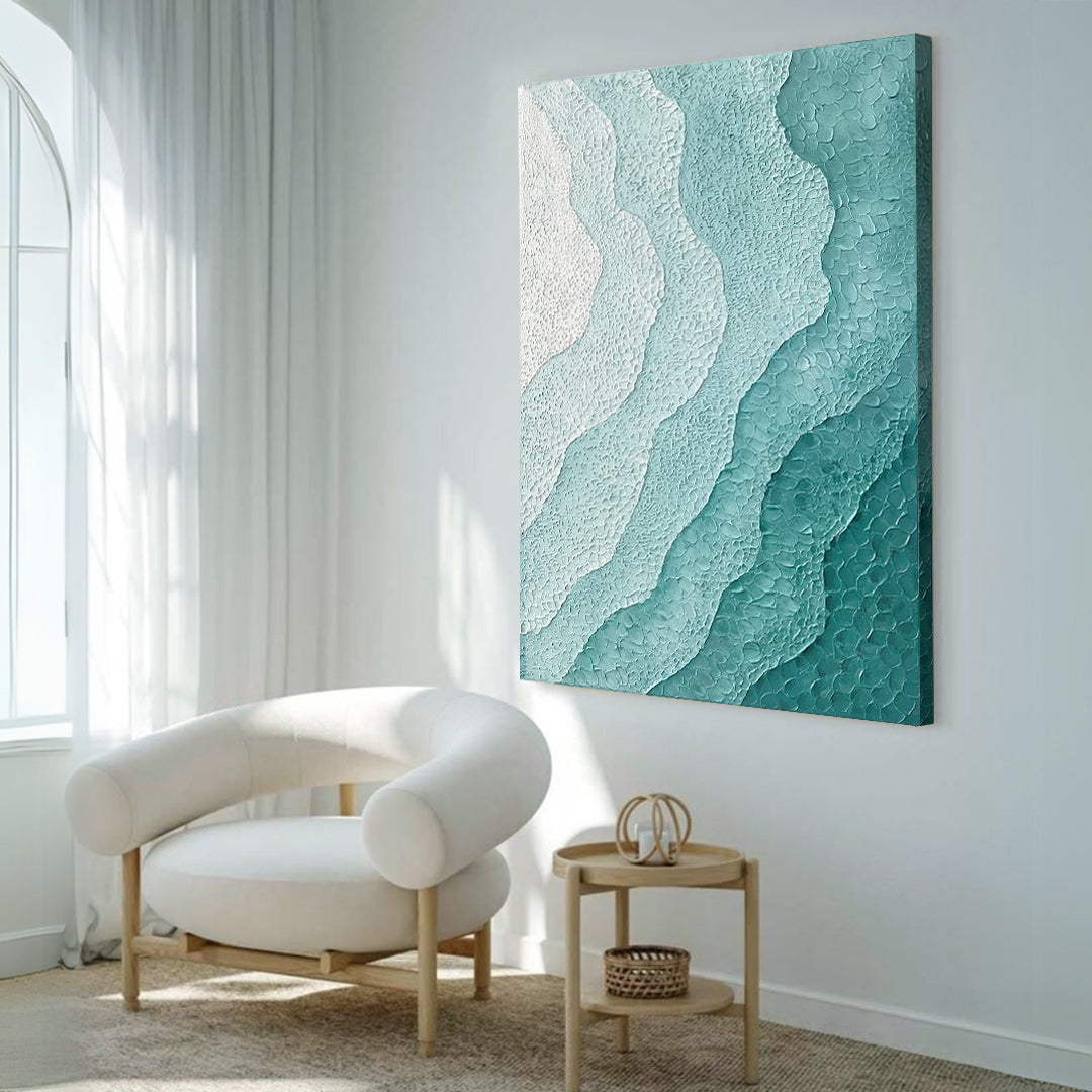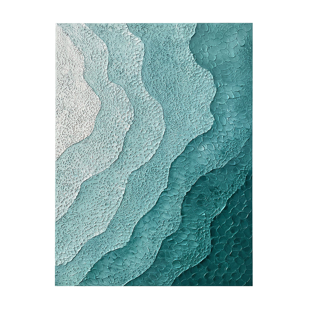 Teal-hued waves fade into soft white, like ripples of luck drifting effortlessly with quiet serendipity. Each textured groove holds a hidden fortune, a reminder that even the smallest changes can lead to unexpected blessings.