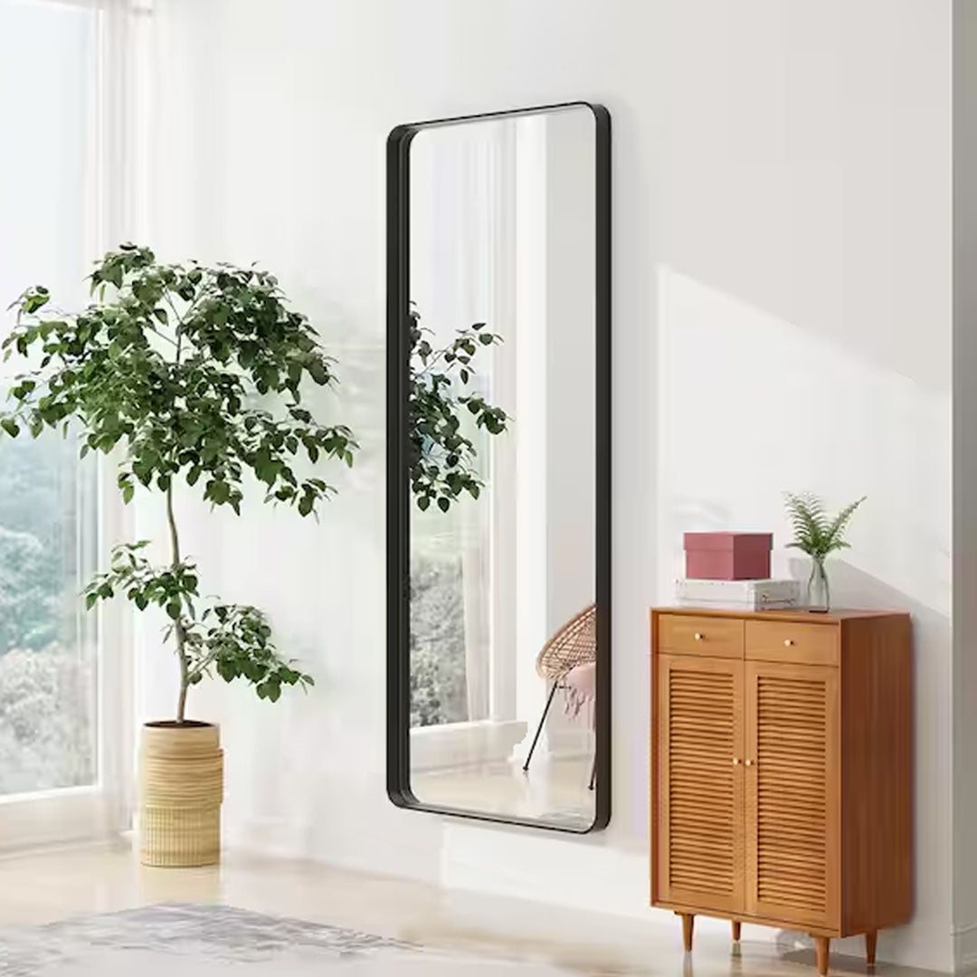 This mirror serves up both function and style for any living space. Accented with a black or silver iron frame, this timeless is piece perfect for bedrooms, bathrooms, or anywhere you need to see your reflection.