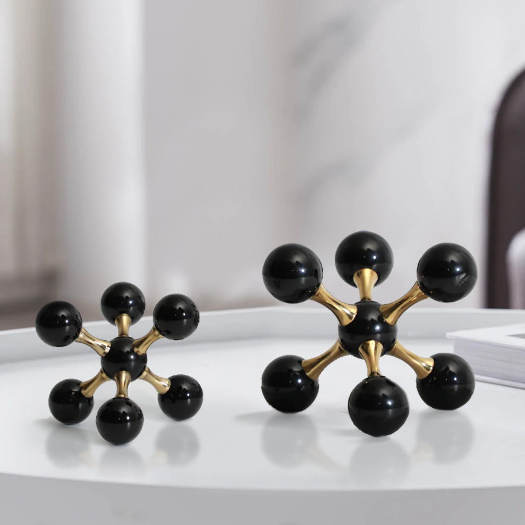 Black marble meets gold metal in this statement tabletop décor. Perfect as either an accent piece or a paperweight, displayed individually or as a set of two.