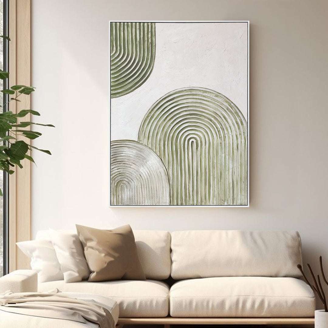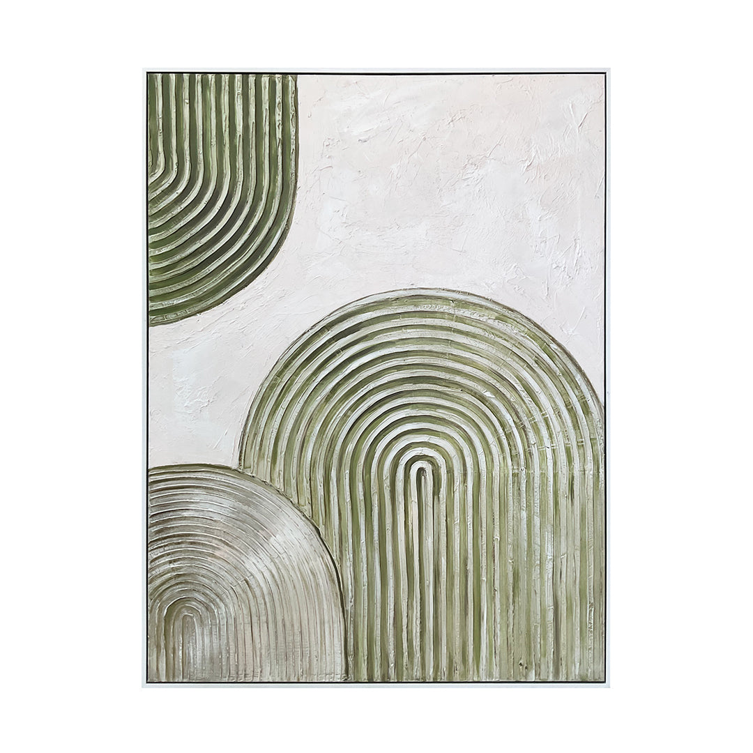 Muted greens and soft whites evoke a quiet renewal, like dawn’s first light kissing fresh morning dew. This soothing palette refreshes the mind and spirit, capturing the stillness of a new day unfolding.