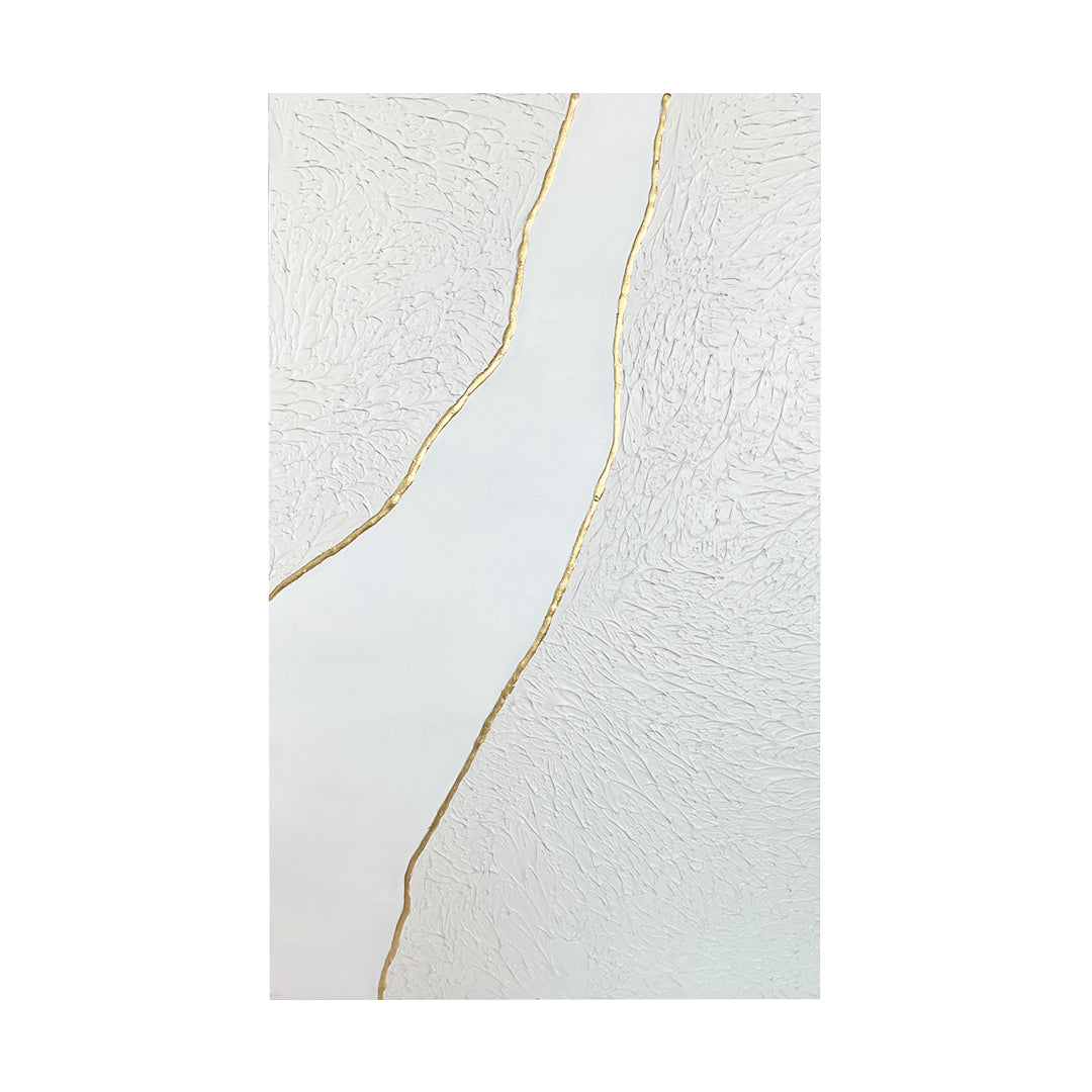 A textured landscape, split by a golden path, tells a story of grit and perseverance. The contrast between rough and smooth reflects the journey where struggle evolves into opportunity, and the unknown paves the way to greatness.