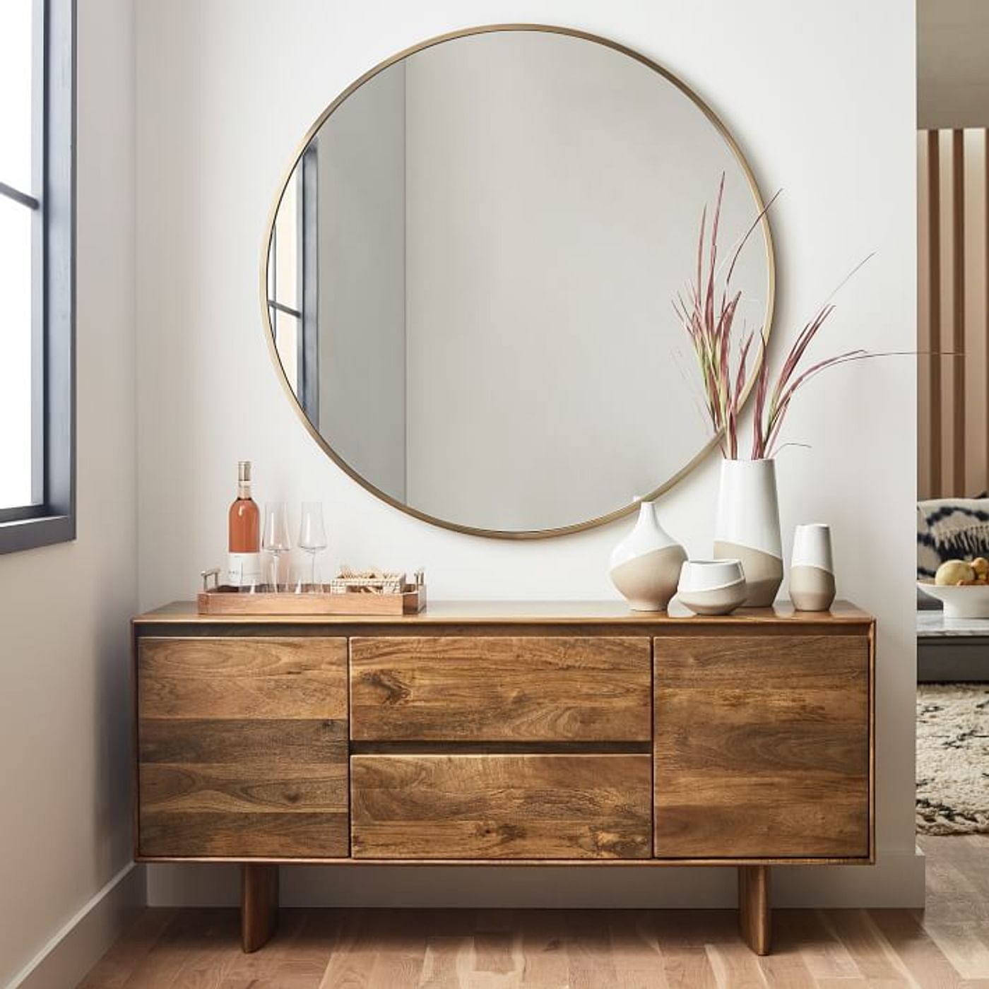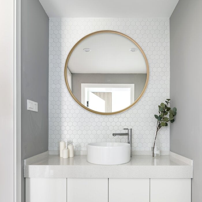 A perfectly timeless mirror, encased in a round iron frame and finished either in gold or silver. Exuding both simplicity and elegance, this is an ideal accent piece in a bedroom, washroom, living room, or essentially any area in your home. Comes in 4 sizes to fit both small and large spaces.