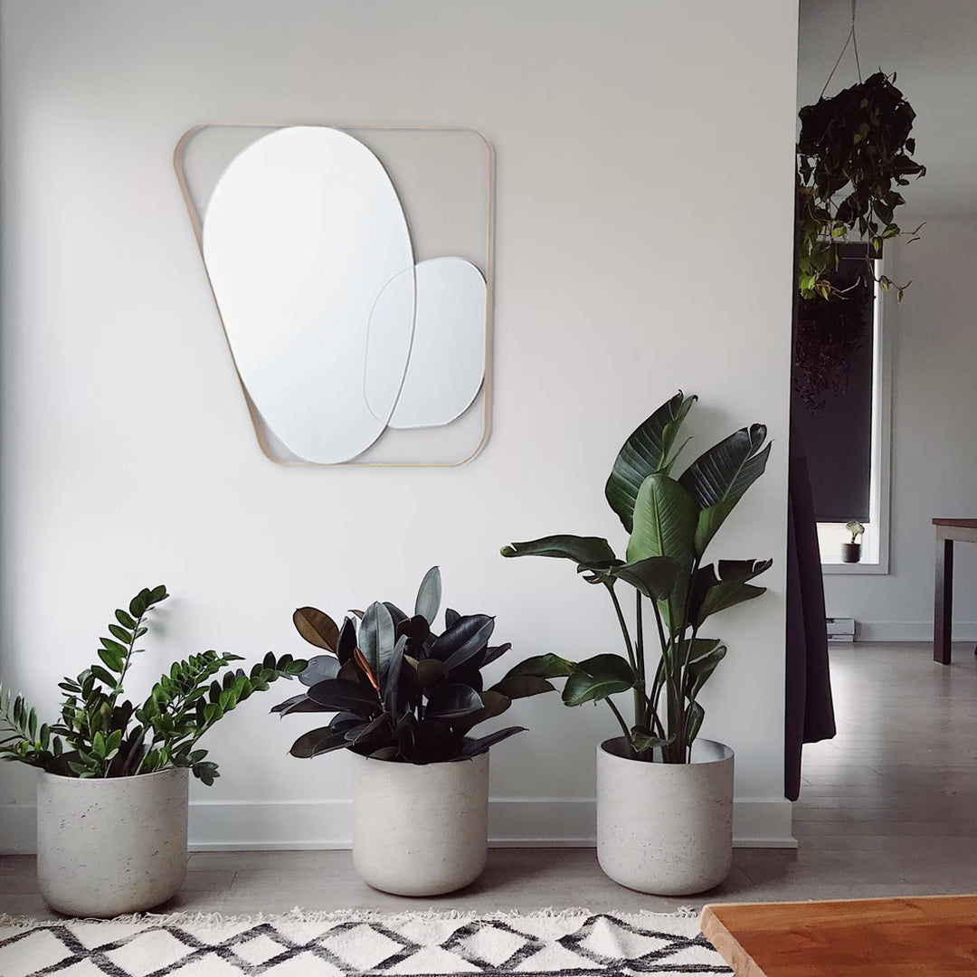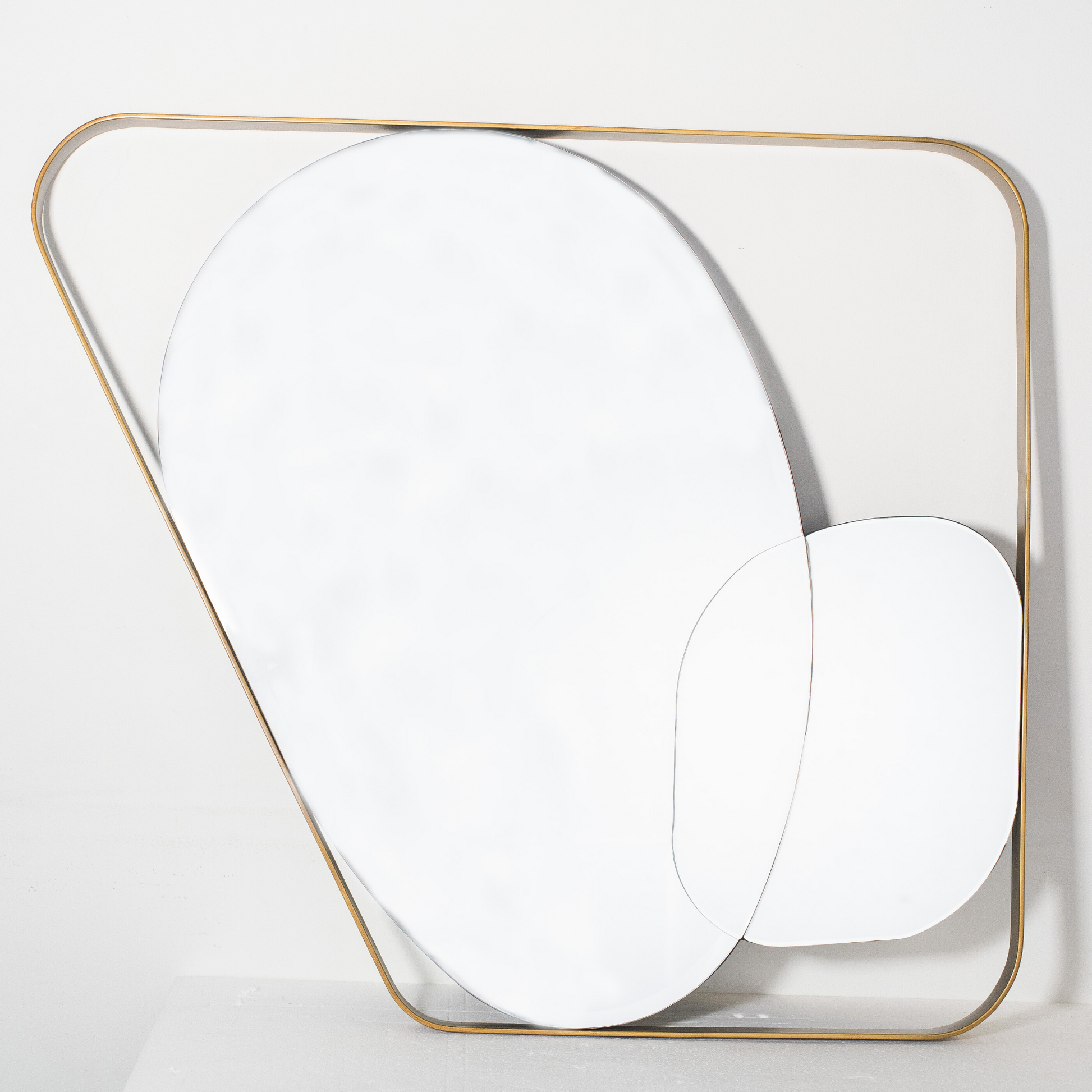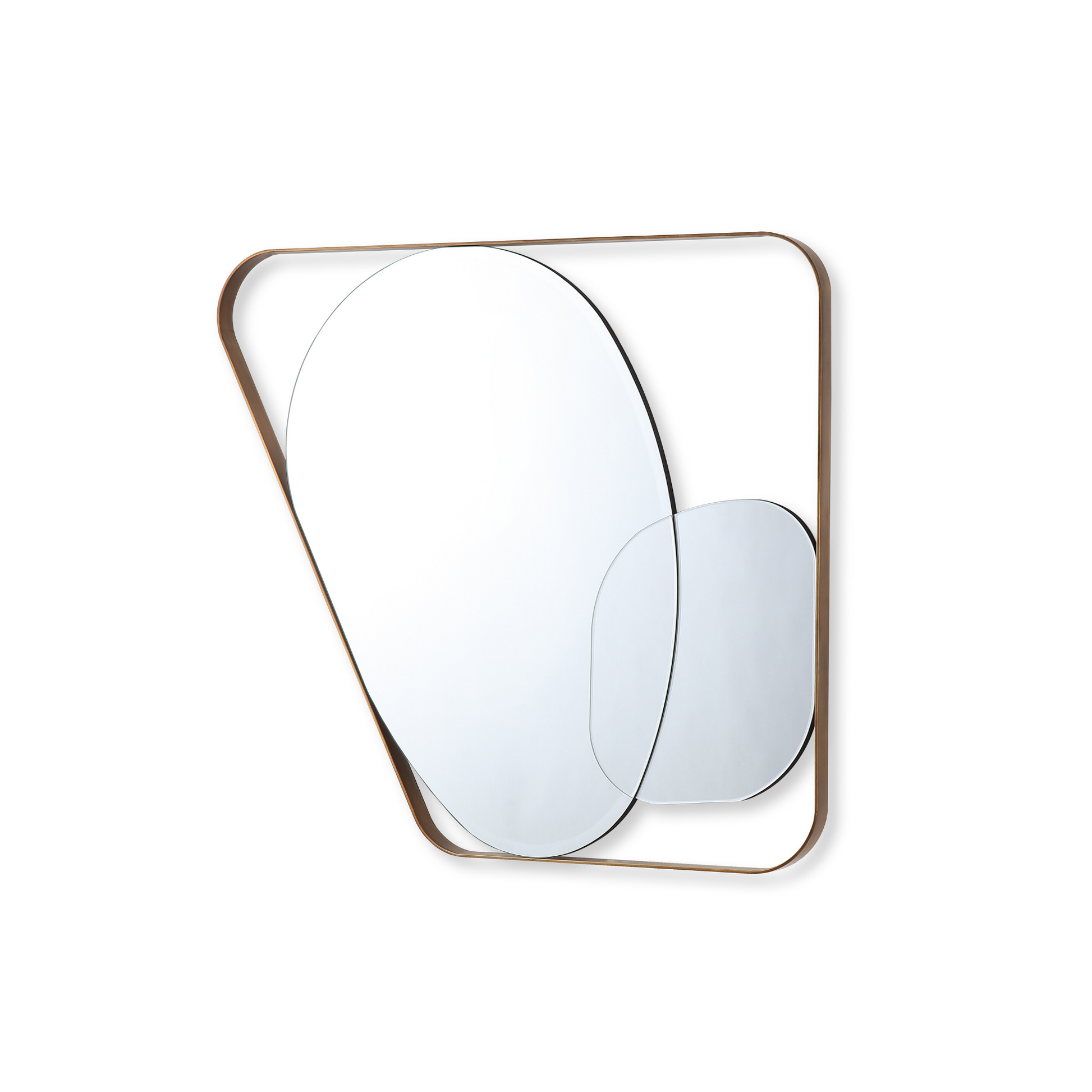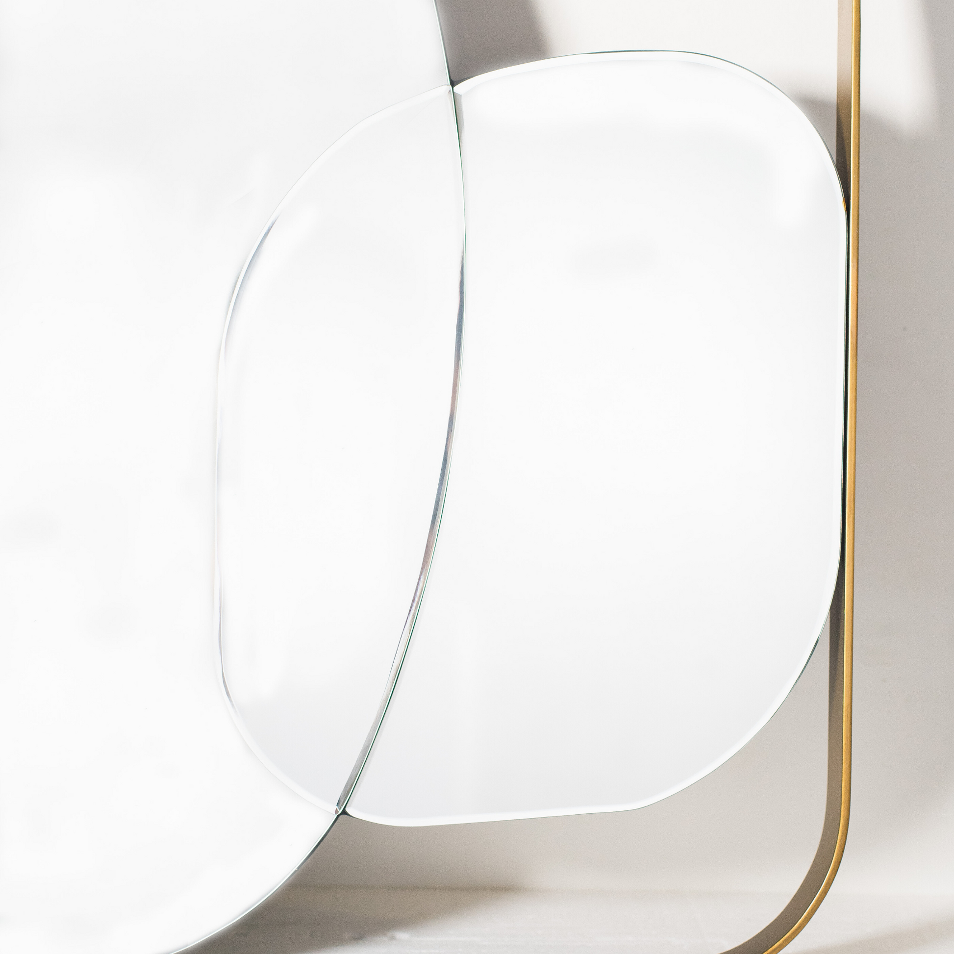 With its overlapping duo of round-edged layers, this modern asymmetrical wall mirror doubles as a unique piece of art. Perfect for a hallway, foyer, living room, or bedroom, this one-of-a-kind piece will spruce up any wall in your home.