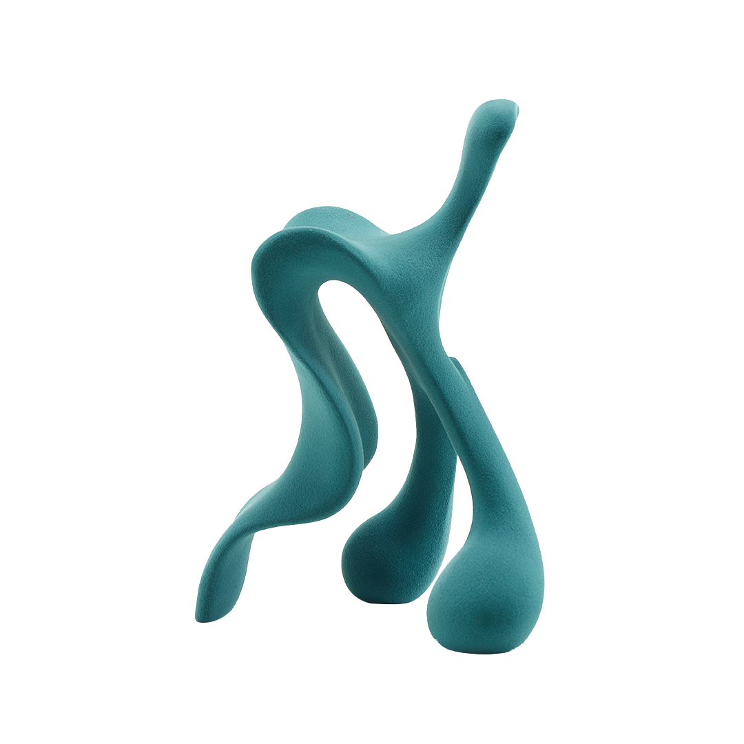 Integrating blue into your home's décor is akin to inviting the fluidity and balance associated with water. This teal colored sculpture in a smooth, flowing form is reminiscent of a gentle wave or a graceful dance. The fluidity of the design is accentuated by the sculpture's seamless curves and tranquil hue. Perfect for art enthusiasts or anyone looking to add a touch of artistic flair to their décor.