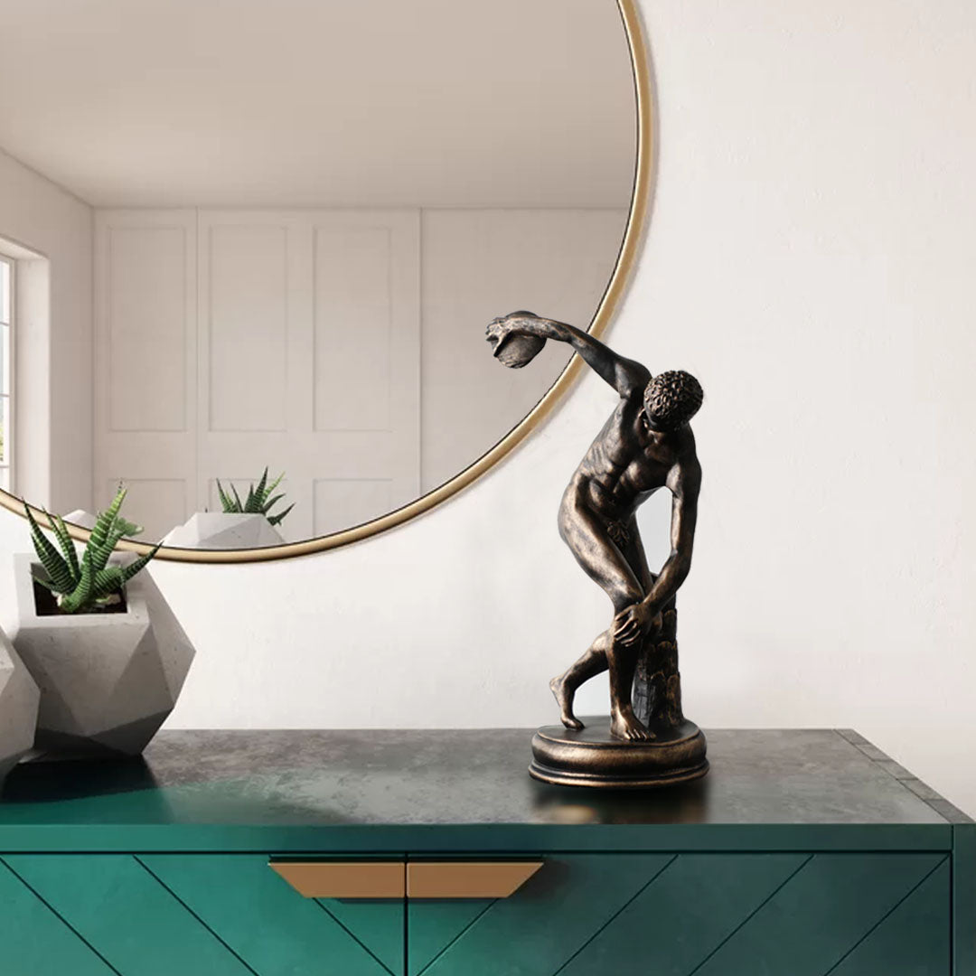 A classic sculpture of an Olympian, made out of antique brass resin, is the perfect addition to add rhythm and balance in your home. Doubles as a display piece and a work of art.