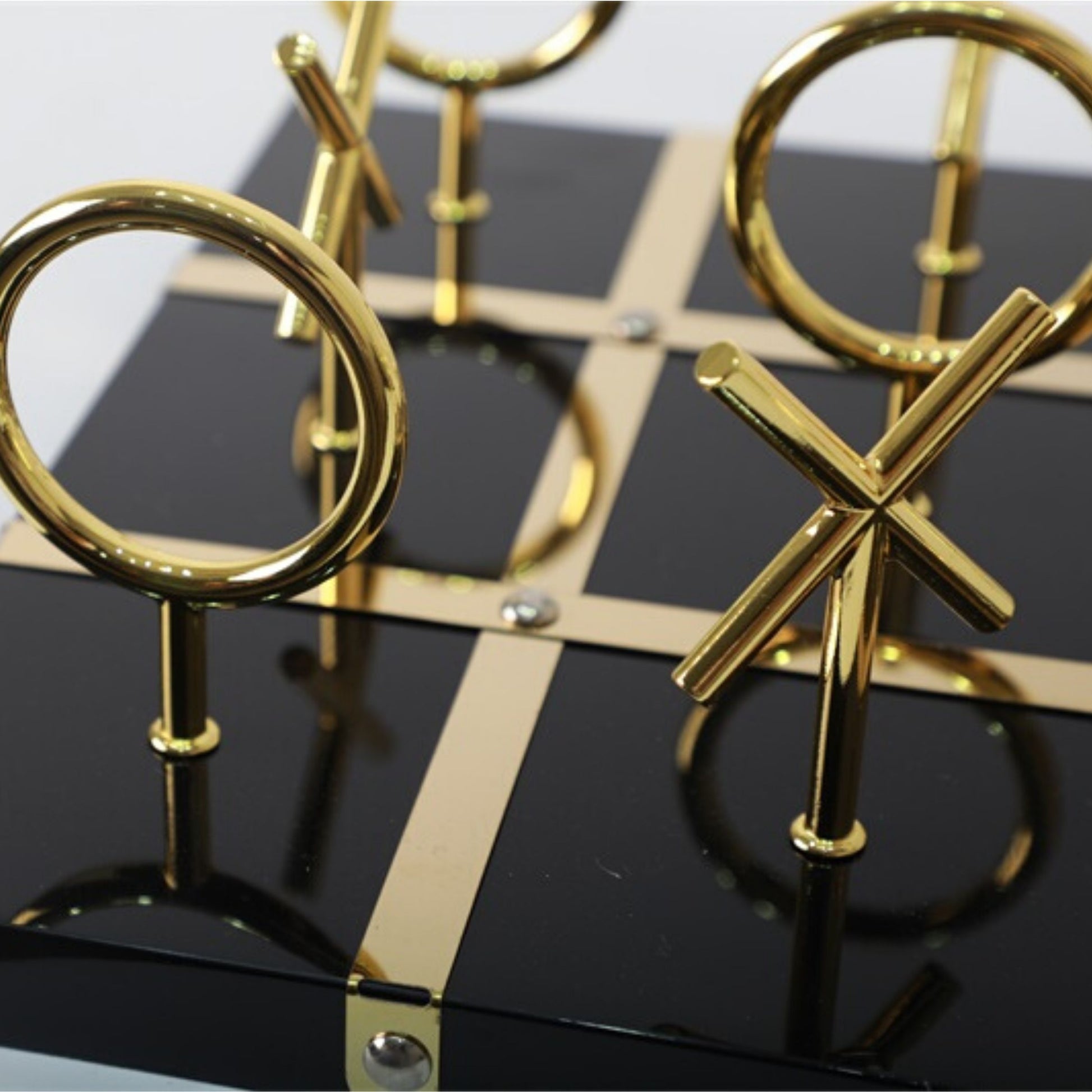 Care for a game of tic-tac-toe? This perfect piece is on popular demand for a reason, as it exudes sheer elegance in any space it is placed in. Crafted in a glossy finish with gold stainless steel detailing, this piece is sure to elicit praise from anyone and everyone (yourself included!). Available in black or white.