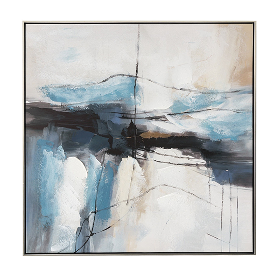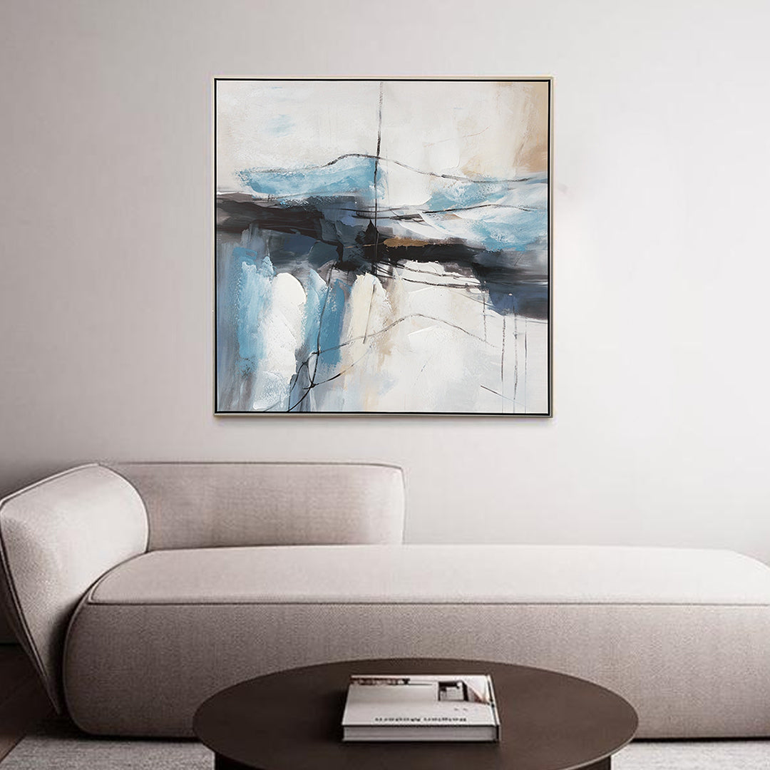 Shades of midnight black, calming blue, and hints of earthy beige echo the tranquil depths of water. Its abstract forms evoke prosperity and rebirth, infusing the environment with ever-flowing blessings.